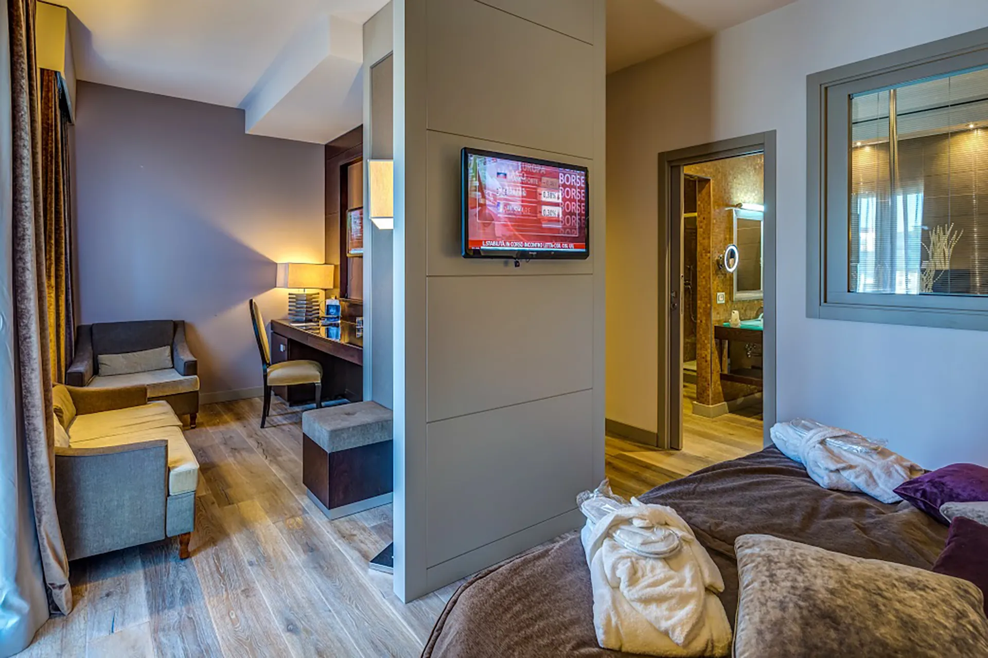 La Royal Suite del Best Western Plus Hotel Perla del Porto si distingue per l’arredamento italiano di gran pregio e per la presenza di una moderna jacuzzi.
