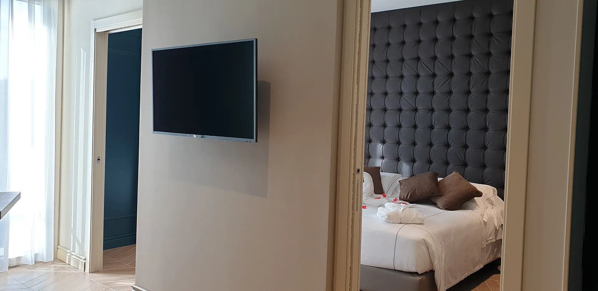 La Suite ha una superficie di 41 mq ed è dotata di numerosi servizi quali vasca idromassaggio e doccia.