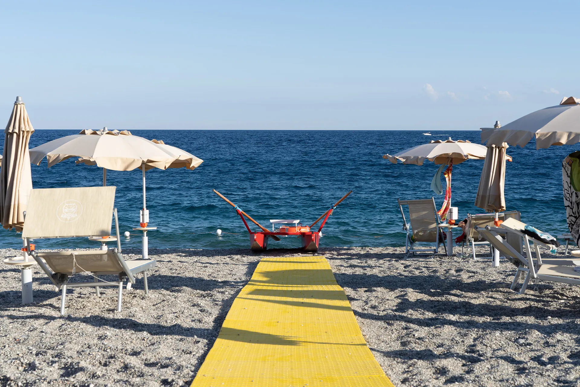 La nostra spiaggia convenzionata offre comfort e servizi dedicati per una giornata di totale relax al mare, disponibile per gli ospiti dell’hotel con accesso a pagamento.
